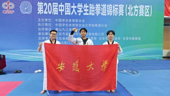 (体育军事教学部 李娟 章晓俊)11月16日,第二十届中国大学生跆拳道锦标赛(北方赛区)在河北省唐山市落下帷幕。我校代表队发挥出色,共斩获一金、一银、二铜的优异成绩。 在男子三人团体品势级位赛中,由化学化工学院任立鹤、李宗林与计算机科学学院李浩组成的队伍配合默契,从排位赛到决赛一路稳定发挥,最终勇夺桂冠。这也是我校在该项赛事中首次摘得品势项目的金牌。随后,三位同学在男子三人团体品势段位赛中再添一枚铜牌。 个人项目方面,中法工程师学院刘子豪在男子71公斤级比赛中获得银牌。纽约石溪学院孟浩在男子56公斤级比赛中斩获铜牌。 此外,孟浩与艺术学院陈玲搭档,在混双品势比赛中分别于入阶赛和级位赛中取得两个第五名。李浩在男子68KG级比赛中位列第五。管理学院林小乔在女子50KG级比赛中同样获得第五名。 本次比赛共有来自北京大学、中国科学技术大学、上海体育大学等全国169所高校的1185名运动员参与角逐。我校共派出8名选手参加甲组竞技和品势项目的比赛,整体表现优异,展现了学校体育育人的丰硕成果。 中国大学生跆拳道锦标赛是由中国学生体育联合会主办的全国性大学生体育赛事,旨在推动高校体育事业发展,提升大学生体质健康与竞技水平。